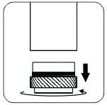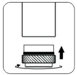 ![]() | 3. Uždėkite rievėtą veržlę atgal (taškas nukreiptas į viršų). |