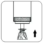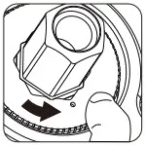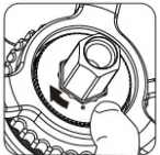 ![]() | 3. Pasukite rievėtą veržlę vienu kampu šalia taško. |