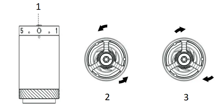 ![]() | 1. Pasukite reguliavimo ratuko žiedą pagal laikrodžio rodyklę maždaug dviem su puse apsisukimo. |