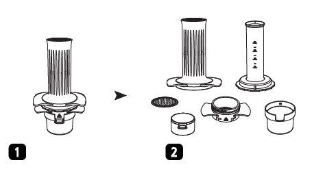 ![]() | FILTRŲ KREPŠELIS (Medžiaga: polipropilenas, nerūdijantis plienas) Filtro krepšelis skirtas maltų pupelių laikymui. Karštas vanduo pučiamas per dušo sietą, sumalamas pupeles ir ištraukiamas per nerūdijančio plieno filtras „Filter Basket“. |