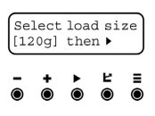 ![]() | Jūsų bus paprašyta pasirinkti savo įkrovos dydį mygtukais + ir -. |