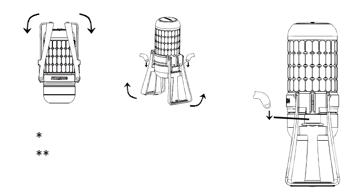 ** Norėdami laikyti: patraukite judamąjį jungiklį žemyn, kad atlaisvintumėte abu laikiklius, tada tiesiog juos sulenkite.