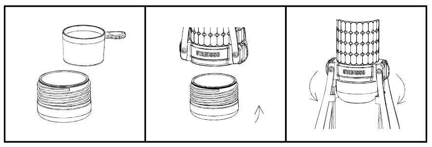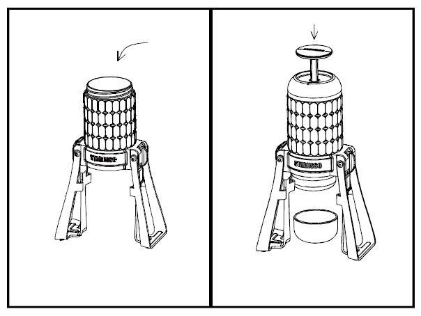 - Tvirtai užsukite apatinį dangtelį ant vandens talpos, kad išvengtumėte nuotėkio.
