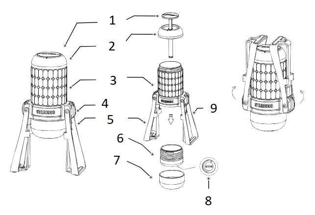 * Norėdami pastatyti „Mirage“: traukite abu laikiklius žemyn iš viršutinės padėties, kol jie bus apatinėje padėtyje ir išgirsite užsifiksavimo garsą. Įsitikinkite, kad „Mirage“ padėtas ant neslystančio paviršiaus.