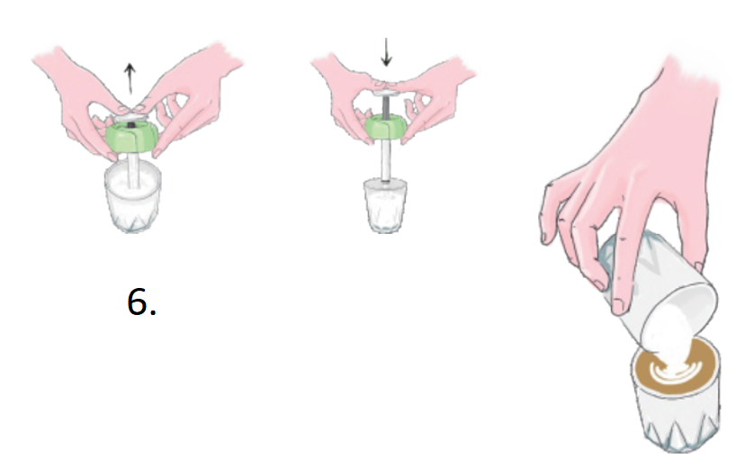Į šalto preso kavos aparatą įpilkite su Staresso paruošto pieno putos.