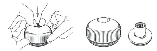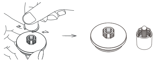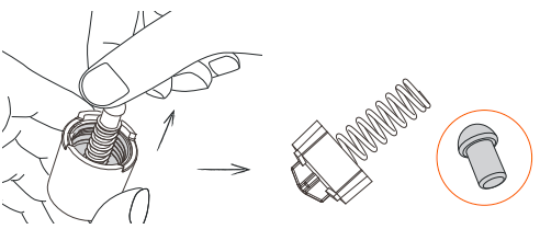 3. Nuimkite mažą juodą silikoninę dalį, esančią ilgosios spyruoklės viduje. Surinkite antgalį. Būkite atsargūs, kad nepamestumėte tos mažos juodos dalies.