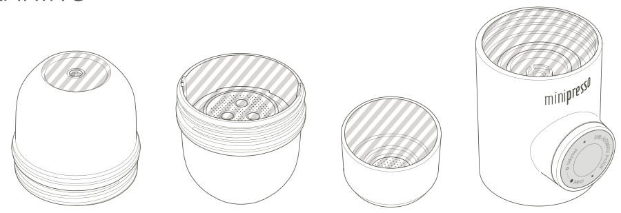 - Minipresso naudokite tik švarų vandenį. Nenaudokite jokių kitų skysčių.