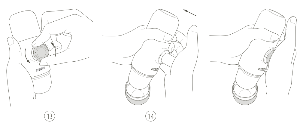13. Atblokuokite stūmoklį iš jo eigos padėties pasukdami jį į kairę.