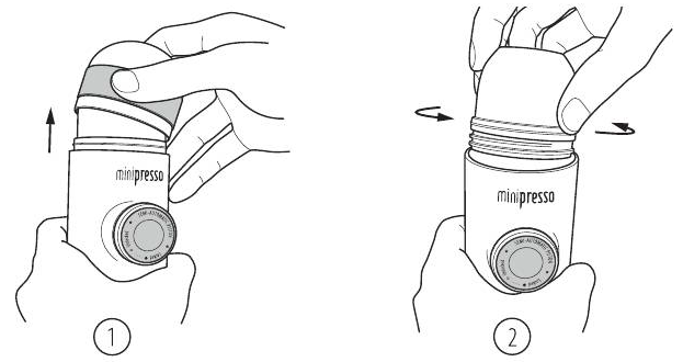 - Niekada negerkite skysčio tiesiai iš MiniPresso, nes turinys gali būti karštas.