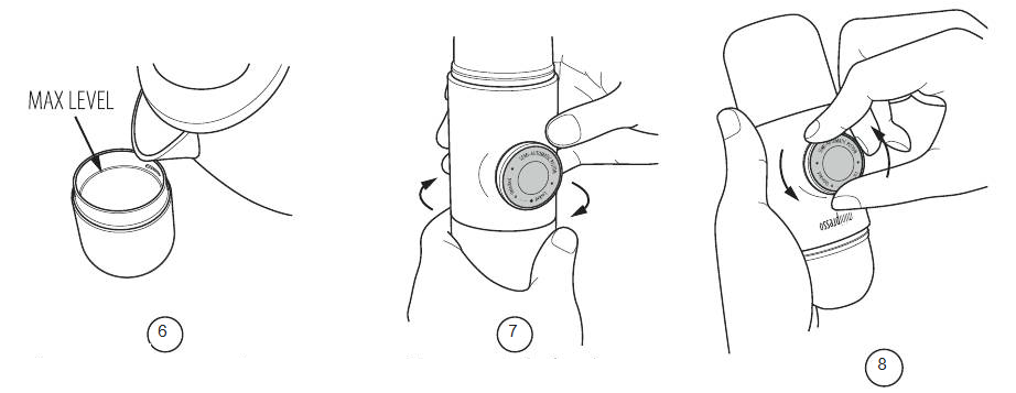 - Minipresso naudokite tik švarų vandenį. Nenaudokite jokių kitų skysčių.