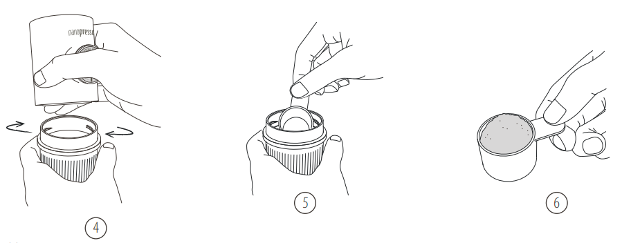 6. Į kaušelį įberkite smulkių kavos tirščių (8 g).